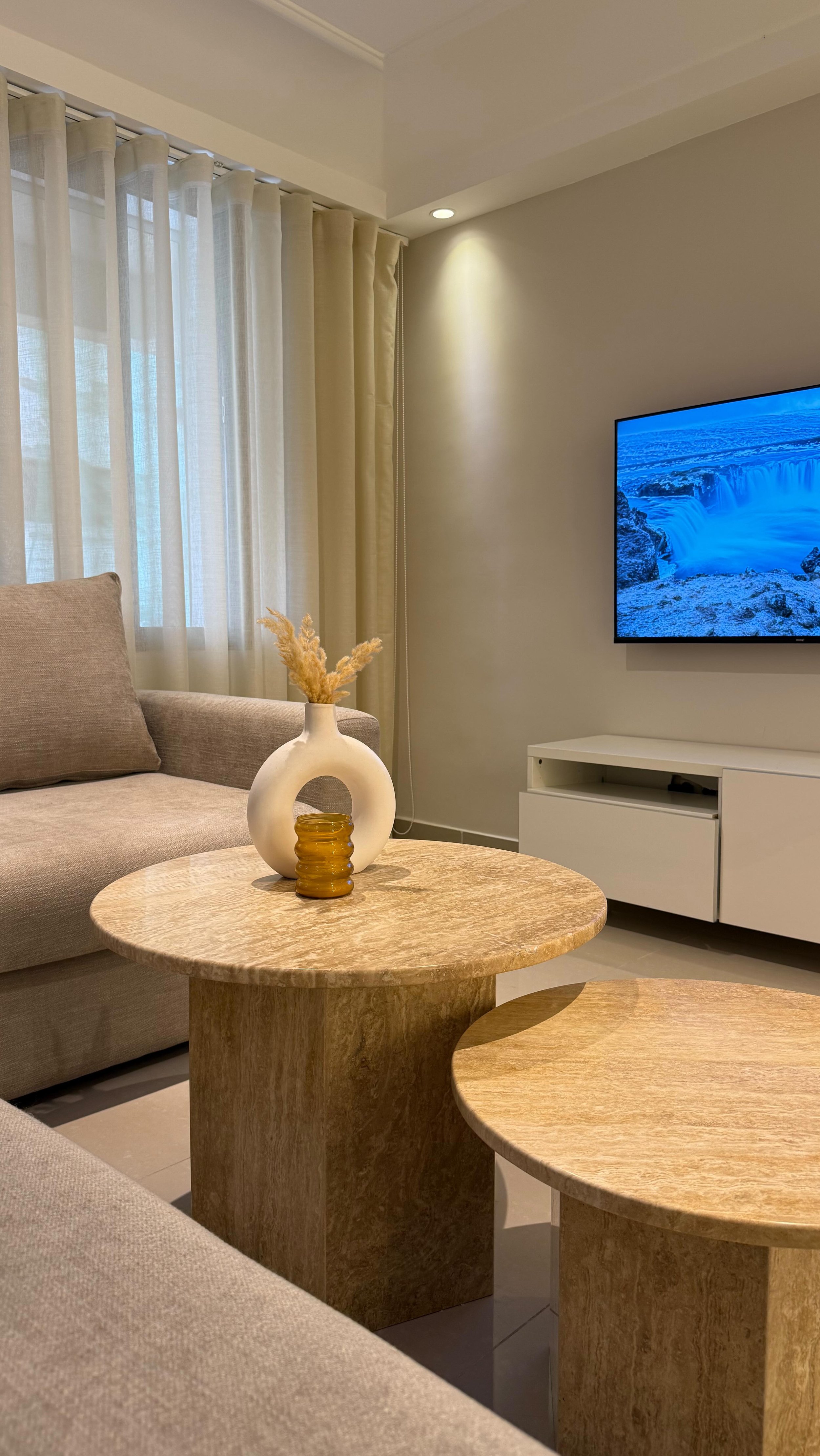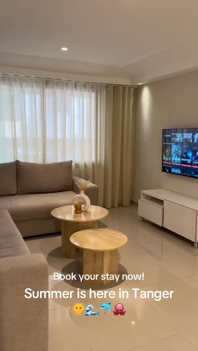 Explore Tangier from the comfort of our centrally located apartments, perfect for families. Each two-bedroom apartment is fully equipped with modern amenities including a kitchen, washing machine, free Wi-Fi, and multiple balconies. Enjoy the convenience of secure parking, 24-hour security, and flexible check-in and check-out. Our apartments also feature spacious living areas with TVs and are furnished with baby beds and chairs upon request. Ideal for both short breaks and extended stays.